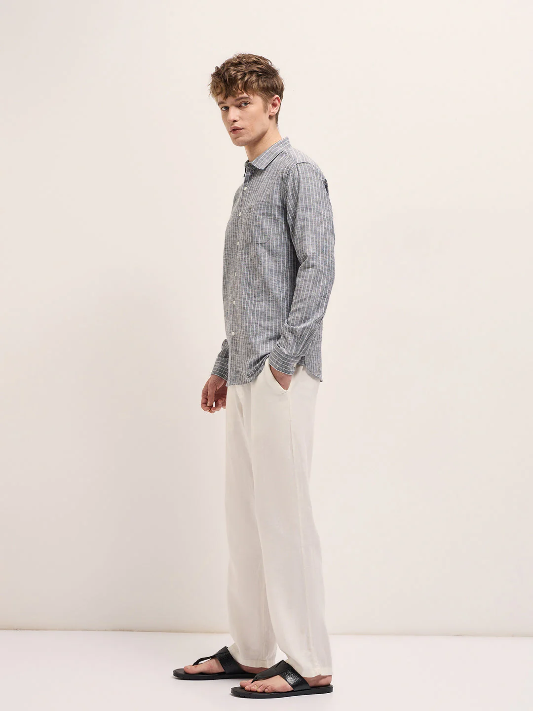 Grey Cotton Linen Slim Fit Solid Casual Shirt