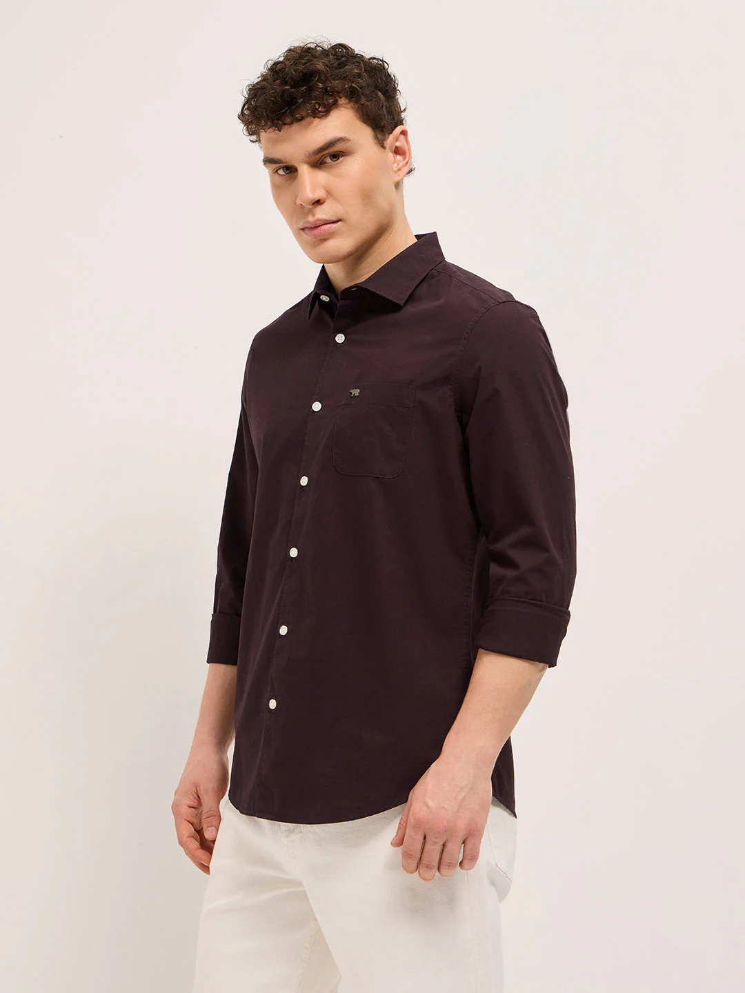 Maroon Cotton Solid Slim Fit Casual Shirt