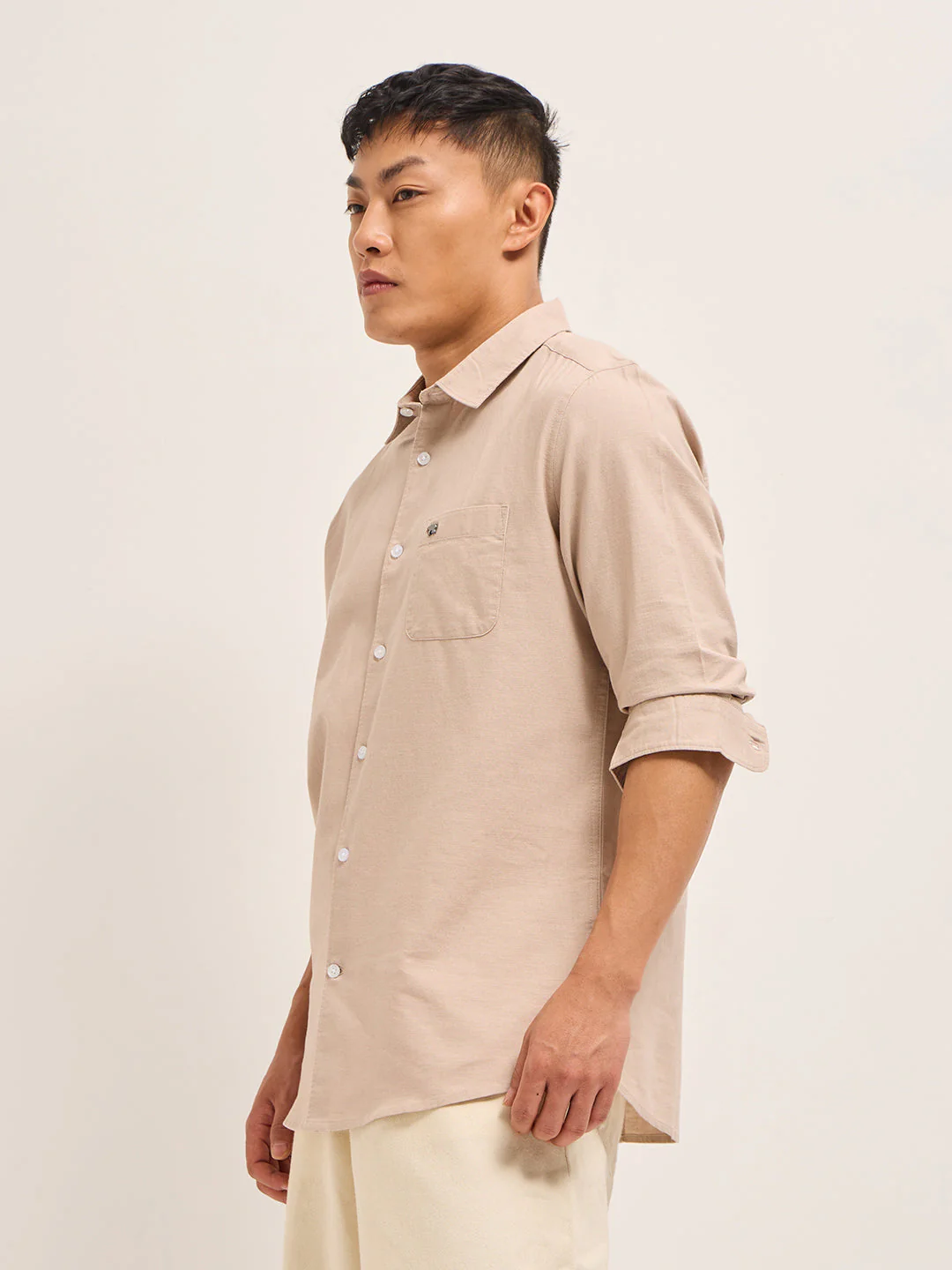 Peach Cotton Linen Slim Fit Solid Casual Shirt