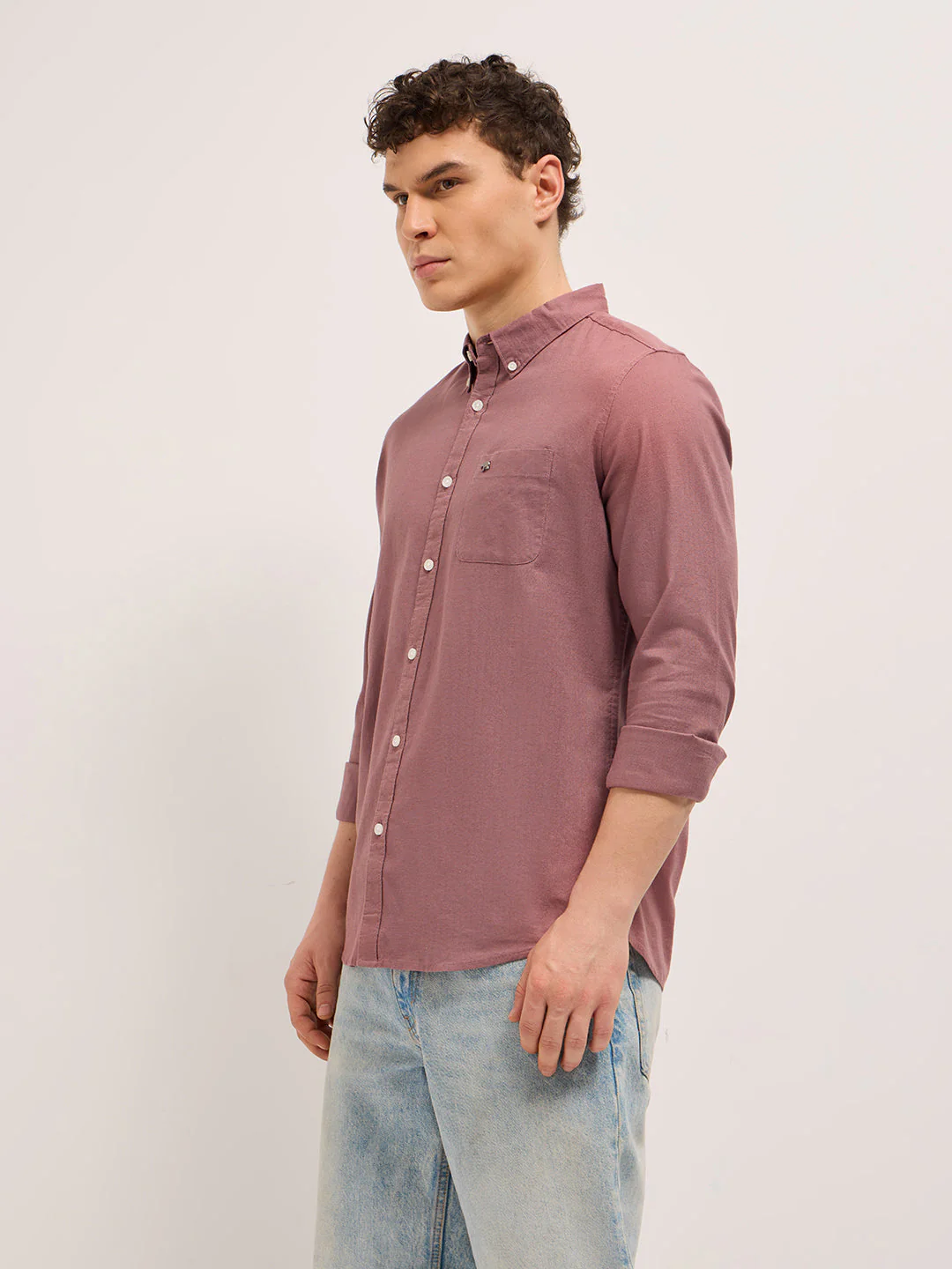 Pink Cotton Solid Slim Fit Casual Shirt