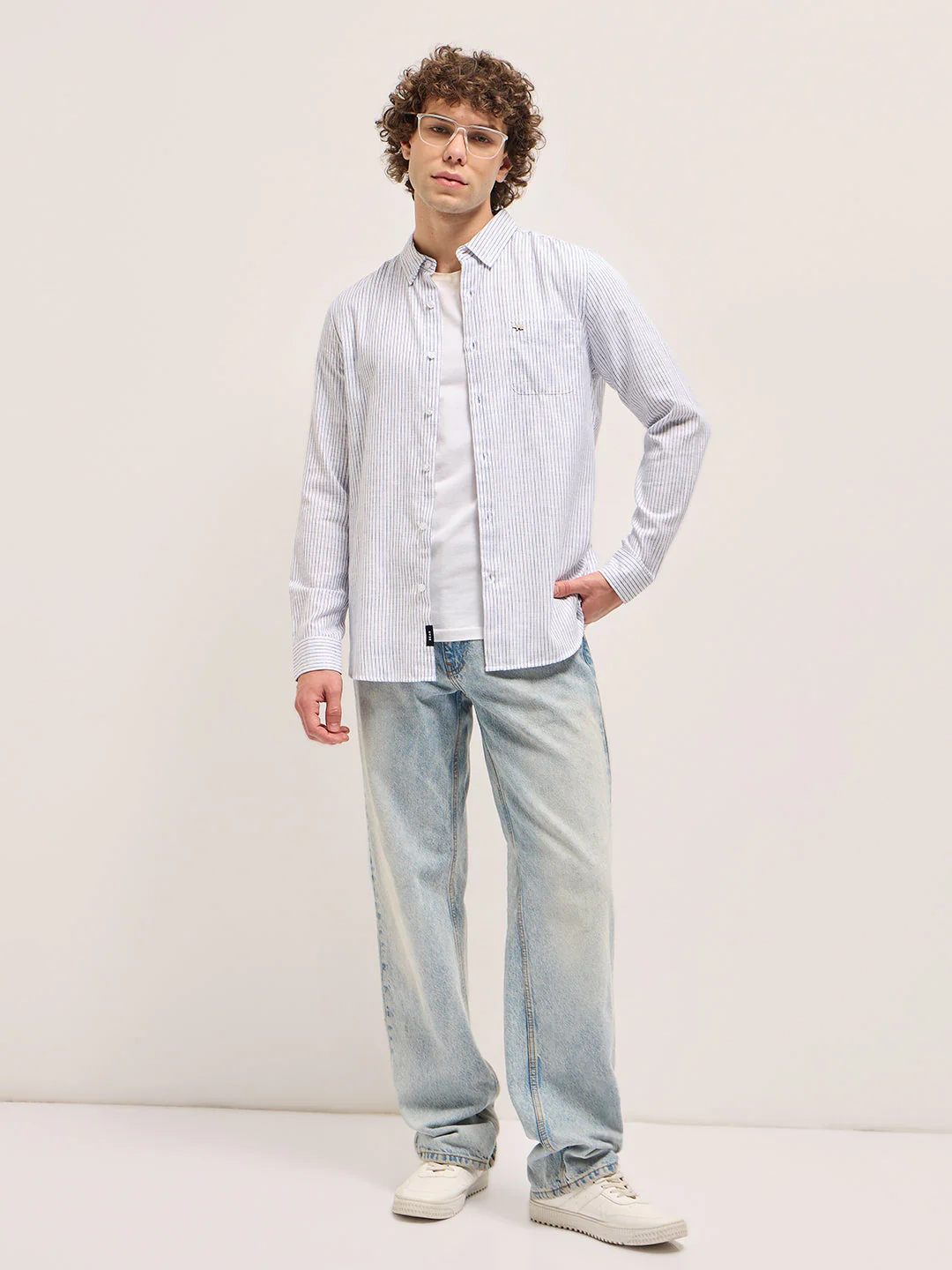 White Vertical Pin Stripes Slim Fit Casual Shirt