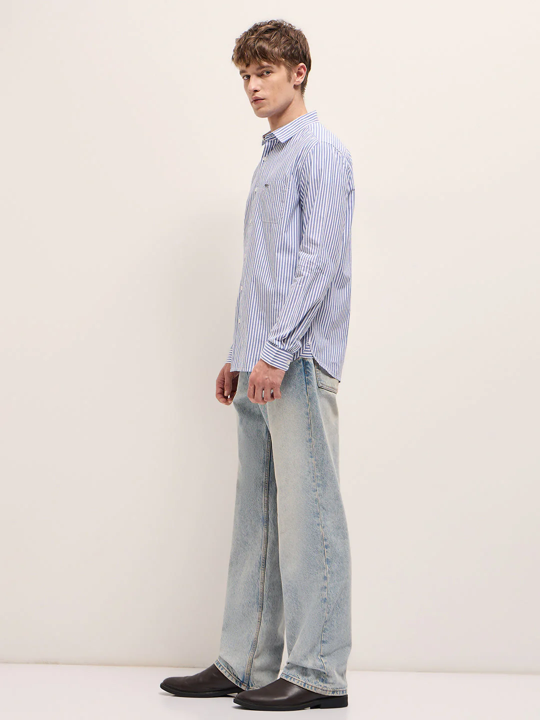 White with Blue Vertical Stripes Slim Fit Casual Shirt